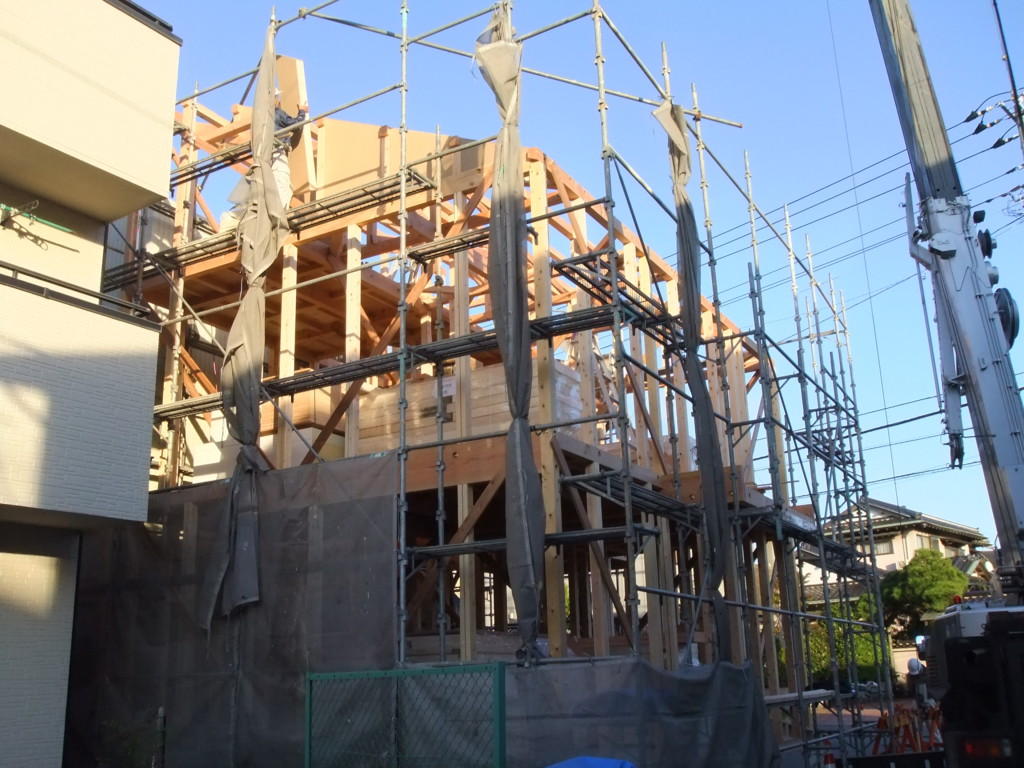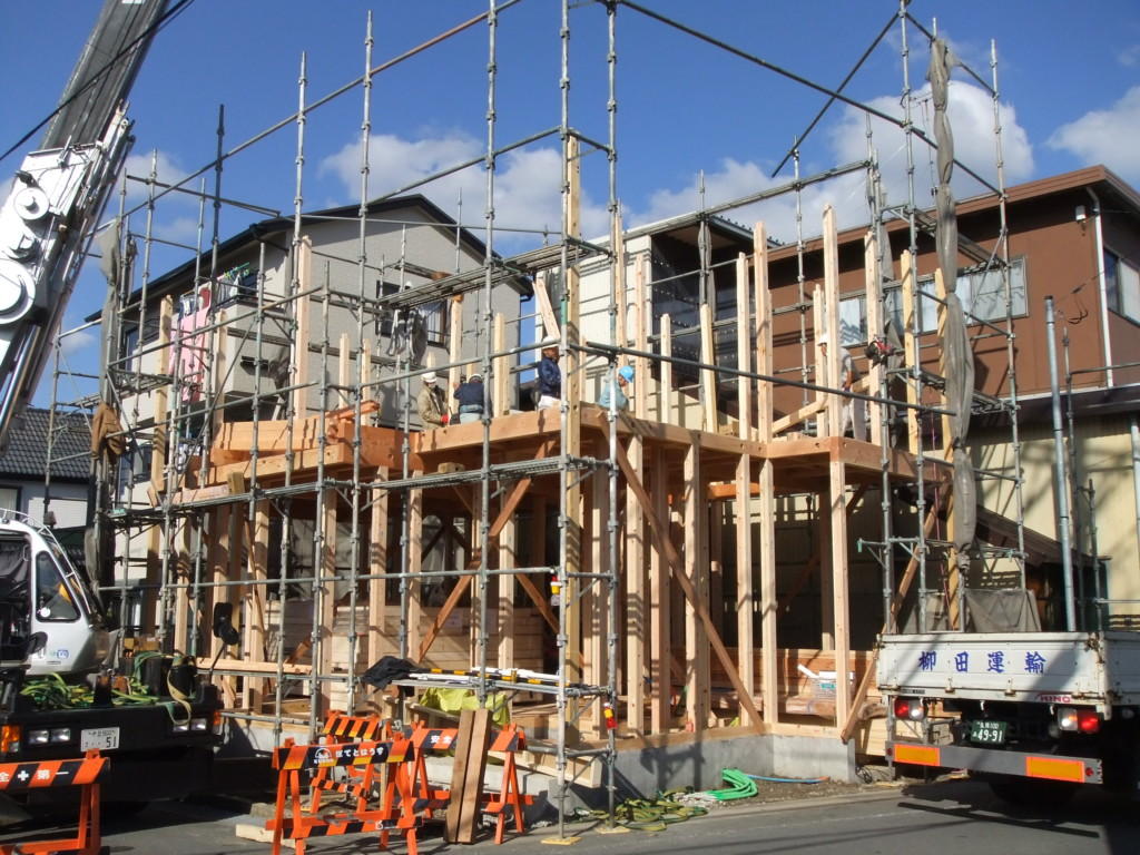先週末に沼津市内にて、建て方を行いました(^^♪お天気も不安定な日が続き、一部地域では降雪もあったりで作業が心配されていましたが無事に建て方工事を行うことができました。↓ ↓ ↓土台から屋根部分までお家が組みあがっていく様子です(^^♪