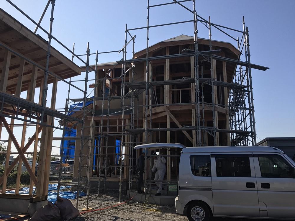 沼津市内にて新築工事中の現場の様子です。