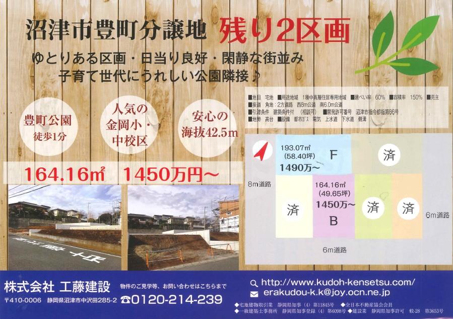 沼津市豊町分譲地 残り2区画 好評分譲中です。