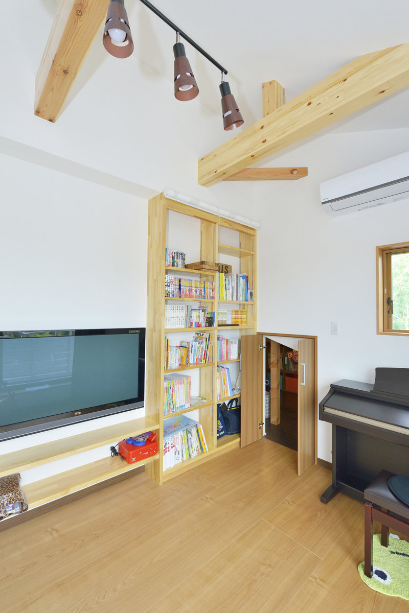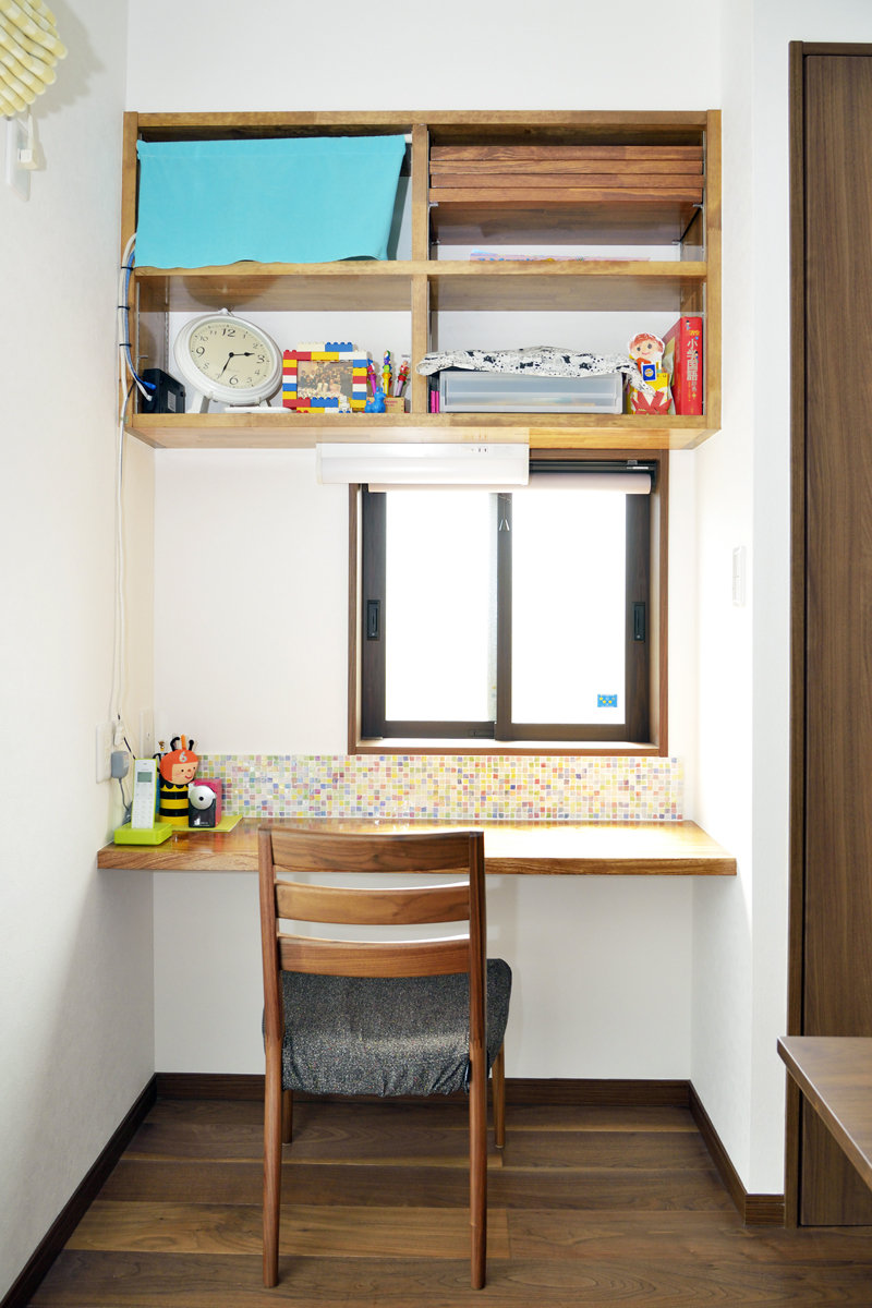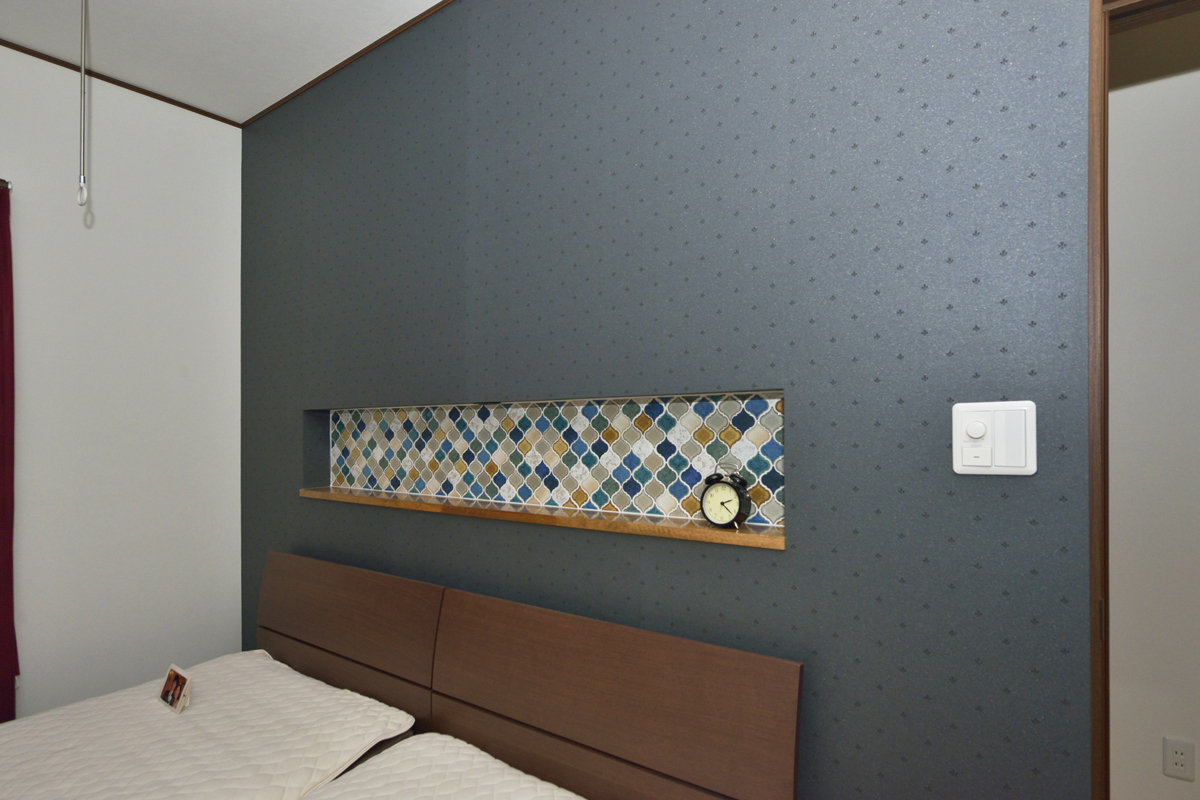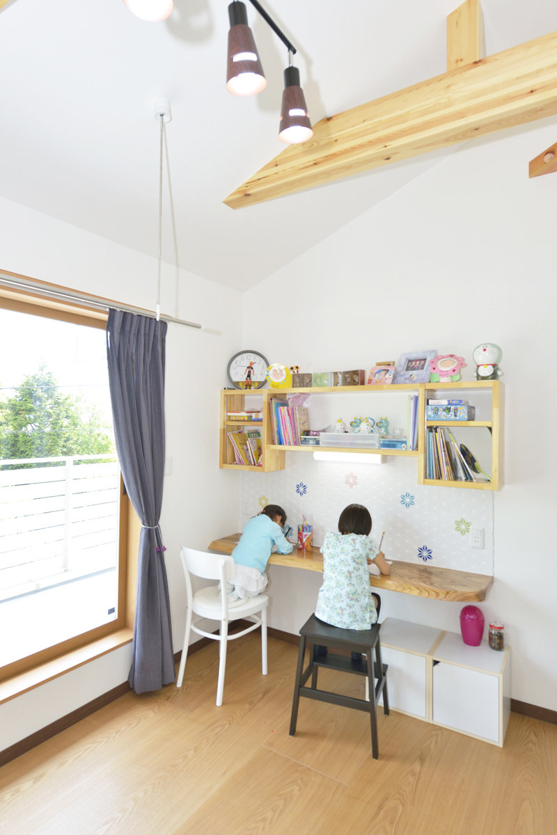 丘の上に建つ一軒家。眺望もよく子育てにはもってこいの土地。施主様は若いご夫婦で、娘さんたちともとっても仲良し。ご夫婦の落ち着く空間と、お子様にとってもとっても優しい家。ご家族の優しさが、セレクトされたアイテムや色合いから伝わります。