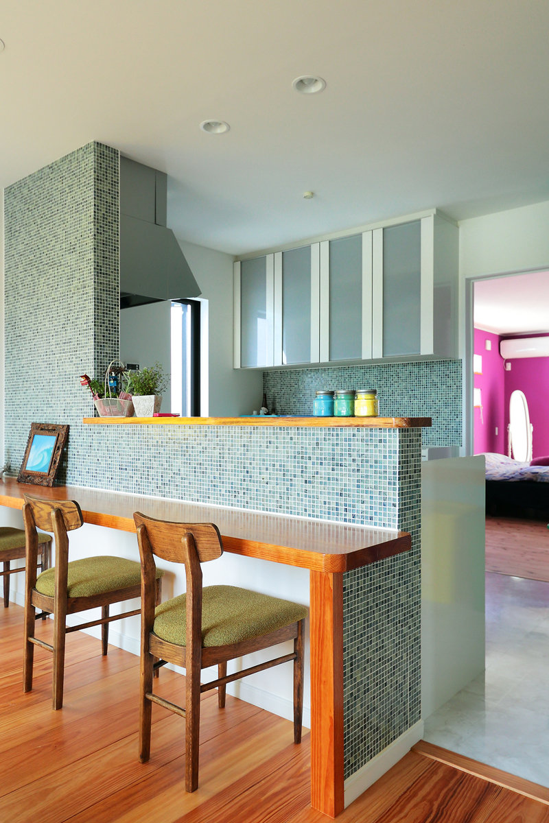 家族皆が集まるリビングを中心に各部屋の壁紙にこだわり、様々な空間を壁紙で表現。ご家族それぞれの個性を大切にしました。