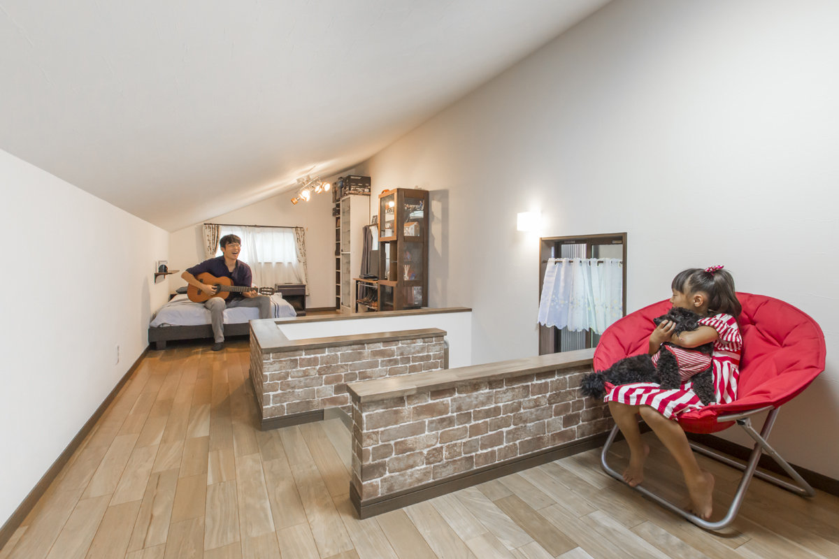 家族がのびのび開放的に暮らせて、それぞれの居場所も確保できる住宅、そして子供が自由にのびのび育つ家を実現しました。限られた敷地内で「明るくかわいい家」をコンセプトに、ゼロ・エネルギー住宅、BELS5つ星も獲得。ご主人の趣味ギターも弾ける秘密の屋根裏部屋にもこだわりました。