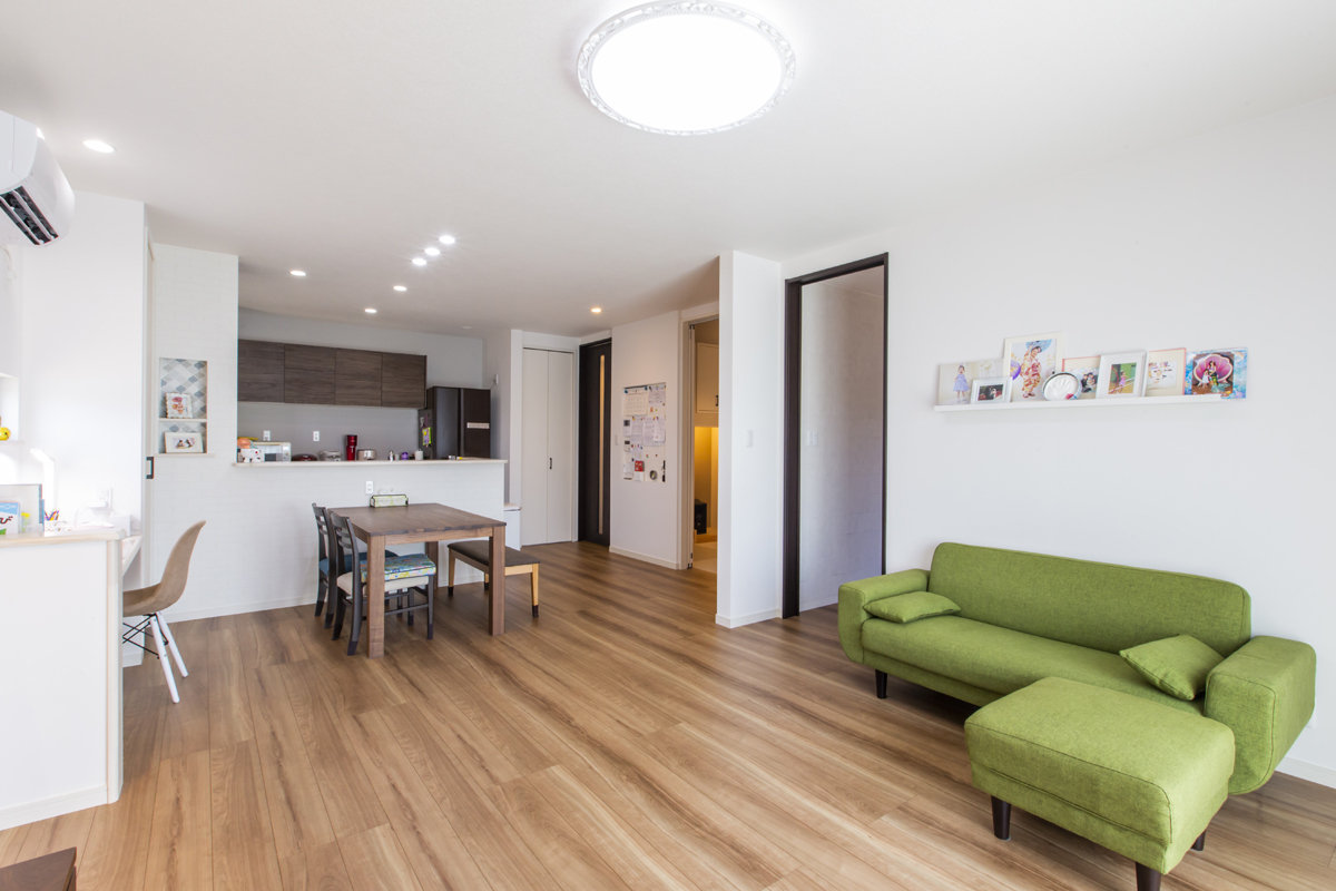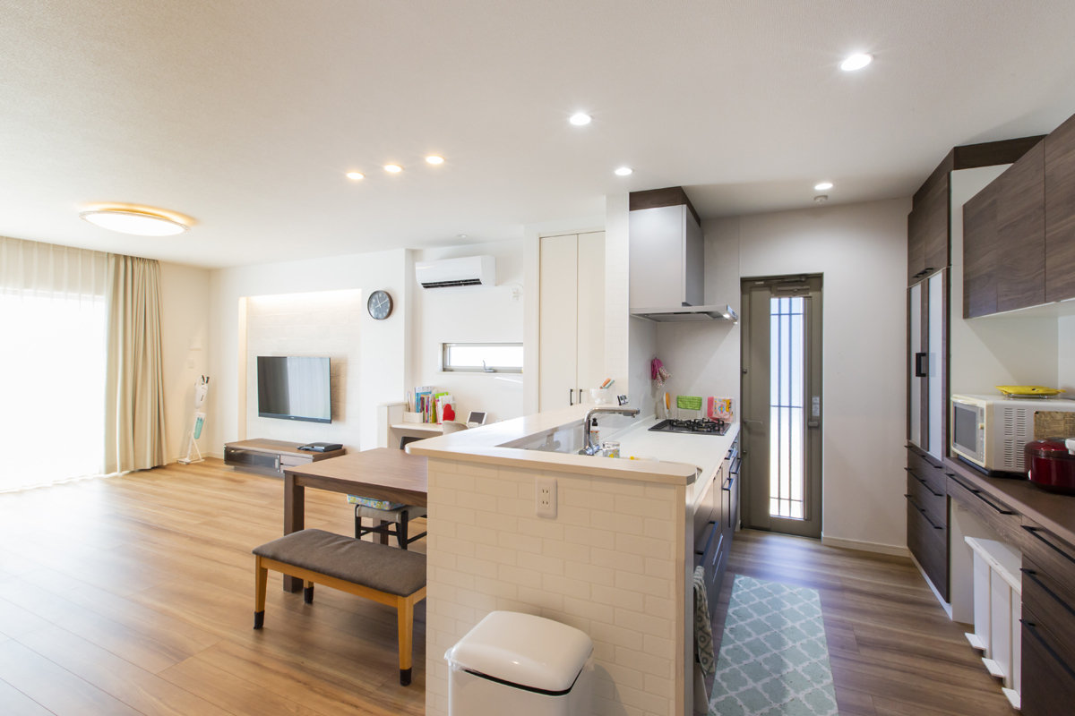 家族で過ごす空間を大切にした住宅。リビングに集まったり、テラスでのんびりと団欒したり。間取りにもこだわりどこにいても家族の気配を感じられます。
