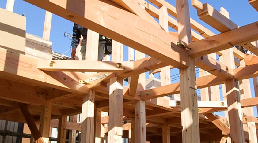 国産ひのき材の土台・柱を全棟に標準仕様として使用しています。